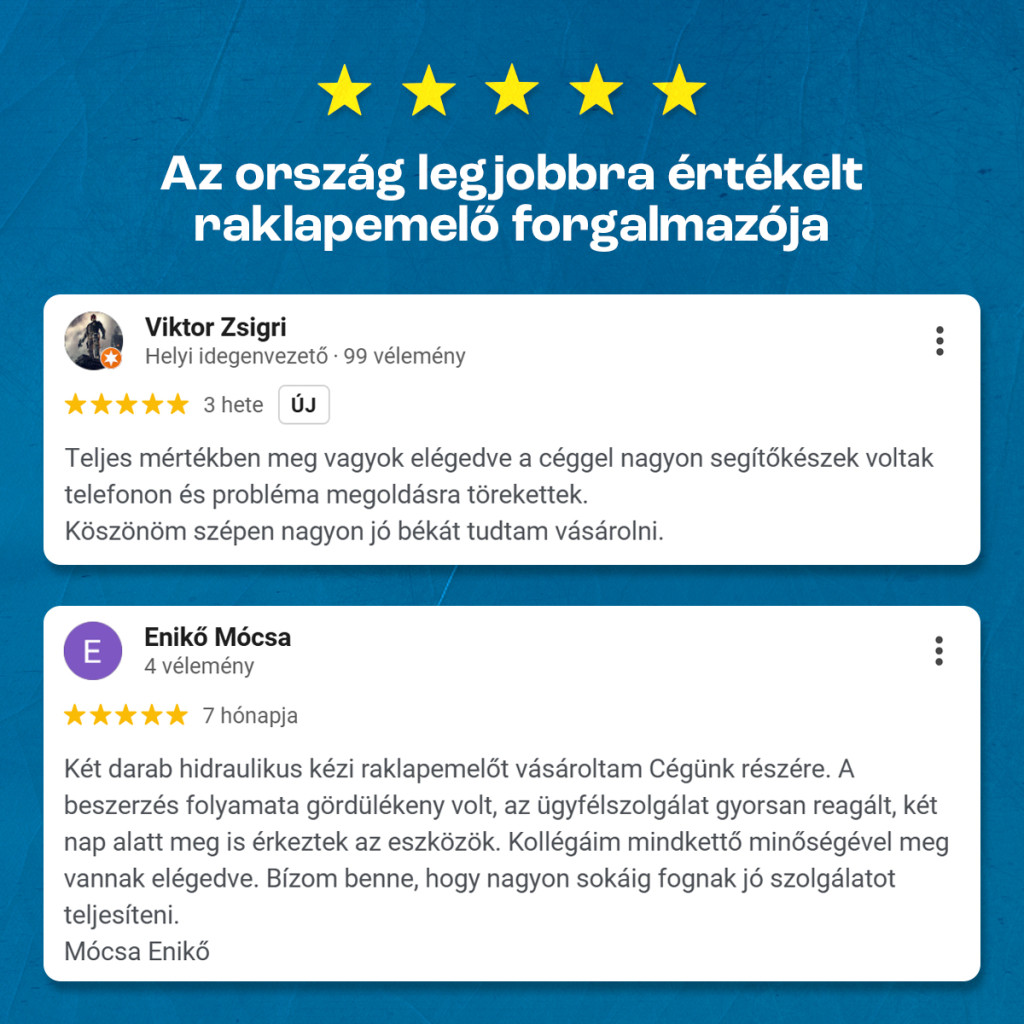 A kézi raklapemelők átvehetők telephelyünkön személyesen munkanapokon 07:00-15:30 között