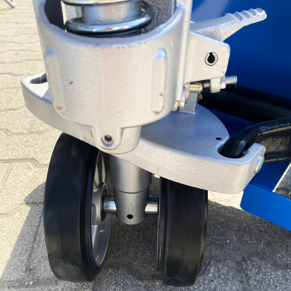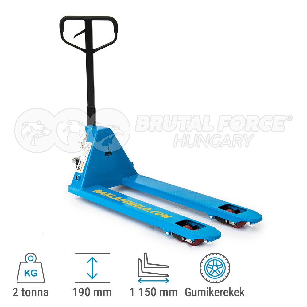 A híresen megbízható MT2000 béka gumikerekes változata. Raklapos áruk szállítására kifejlesztett, 2 tonna teherbírású, könnyen kezelhető, nagyon fordulékony kézi raklapemelő eszköz, Gumi kerekekkel! A süllyesztési sebesség tetszés szerint szabályozható, a három állású vezérlőkarral minden funkció pontosan kezelhető. A súlyleengedés kézzel és lábbal is megoldható. Jó minőségű, extra méretű (20 cm átmérőjű) gumi kerekekkel, dupla poliuretán burkolatú villagörgőkkel erősített nikkelezett hidraulikával és 3 pontos zsírzási lehetőséggel a hosszabb élettartam érdekében.