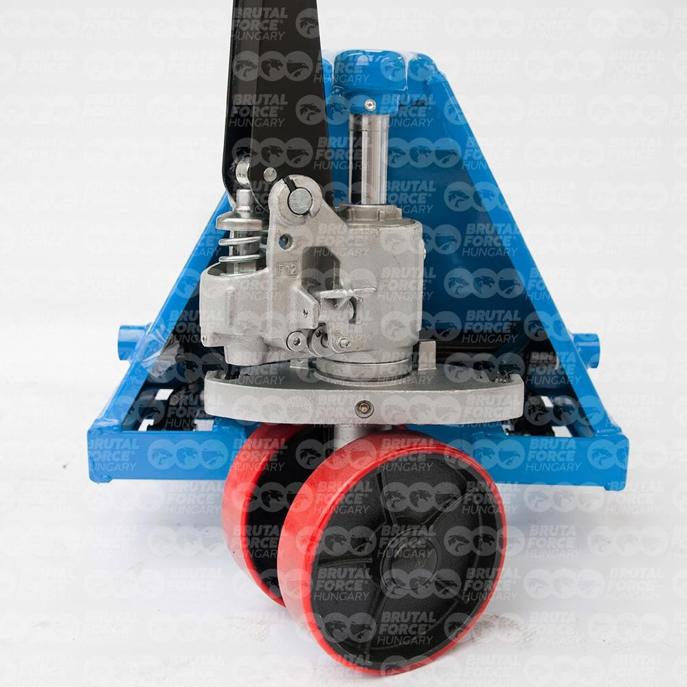 Raklapos áruk szállítására kifejlesztett, 2,5 tonna teherbírású, könnyen kezelhető, nagyon fordulékony, kézi raklapemelő eszköz. A süllyesztési sebesség tetszés szerint szabályozható, a három állású vezérlőkarral minden funkció pontosan kezelhető. A súlyleengedés kézzel és lábbal is megoldható. Jó minőségű, extra méretű (20 cm átmérőjű) poliuretán kormányzott kerekekkel, dupla poliuretán burkolatú villagörgőkkel erősített nikkelezett hidraulikával és 3 pontos zsírzási lehetőséggel a hosszabb élettartam érdekében.